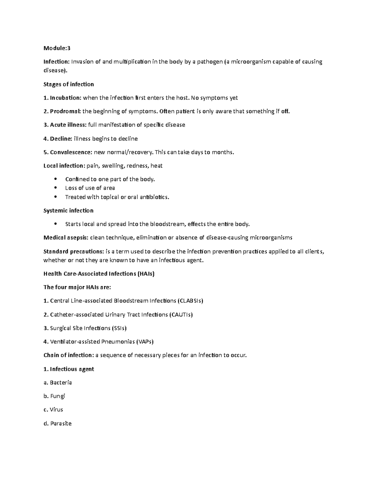 215 exam 2 study guide - Module: Infection: Invasion of and ...