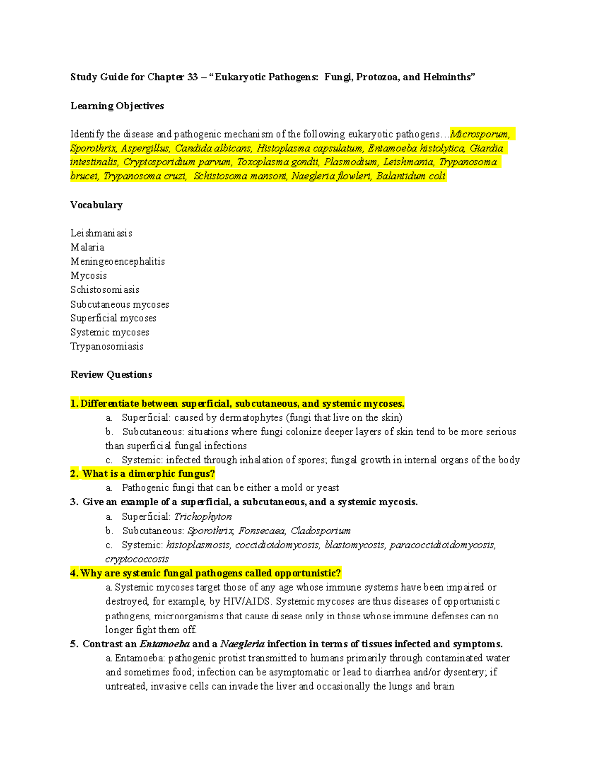 Fungal Pathogens Study Guide - Fungal Pathogens – Study Guide Suggested ...