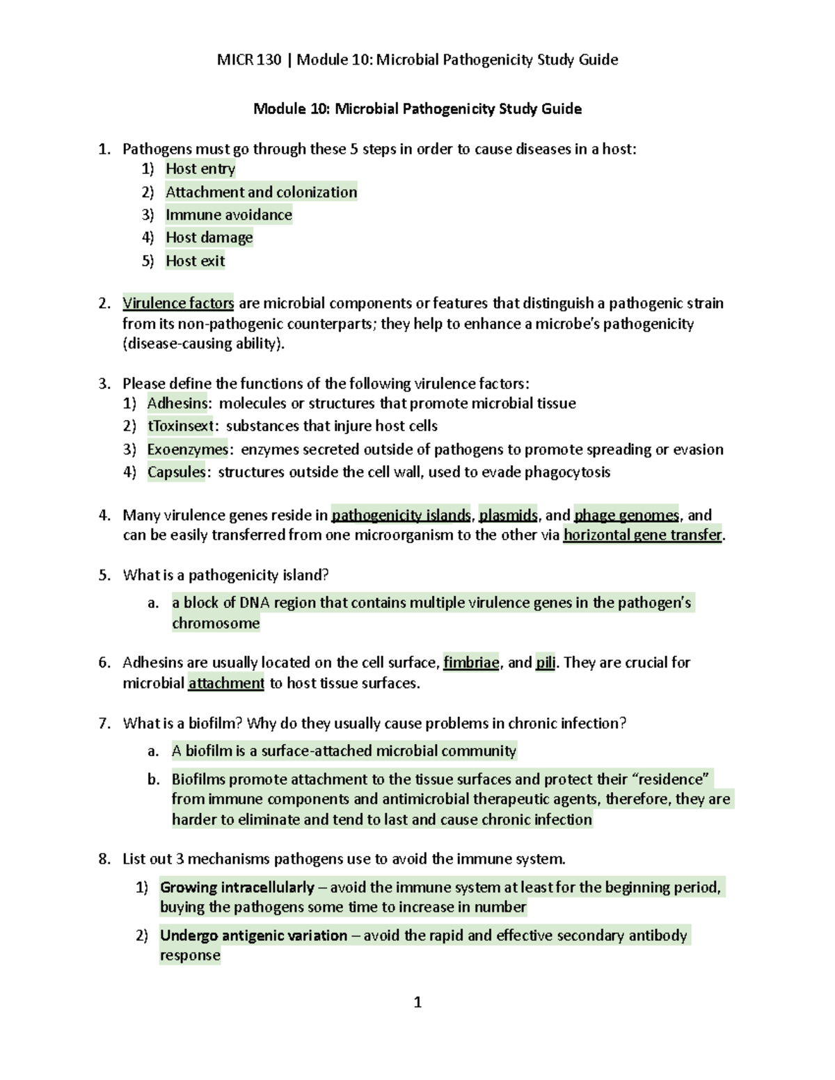Module 10 Microbial Pathogenicity Study Guide - Please define the ...