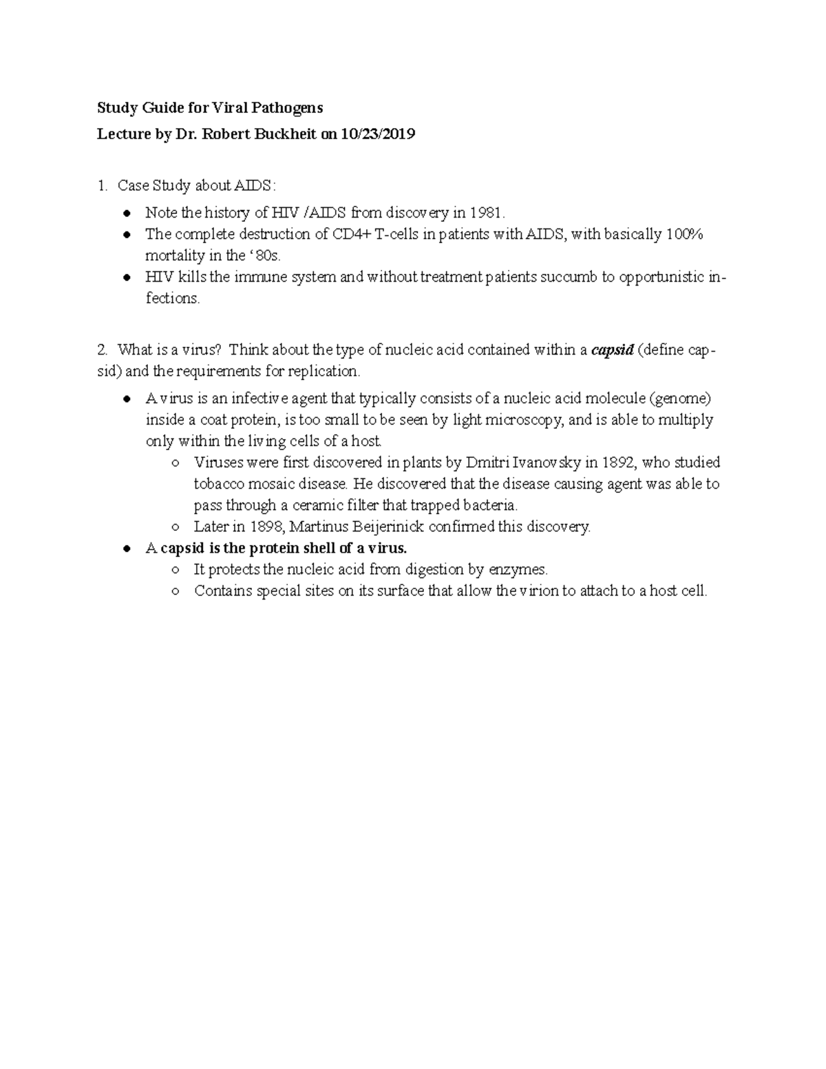 Viral Pathogens - Study Guide for Viral Pathogens Lecture by Dr. Robert ...