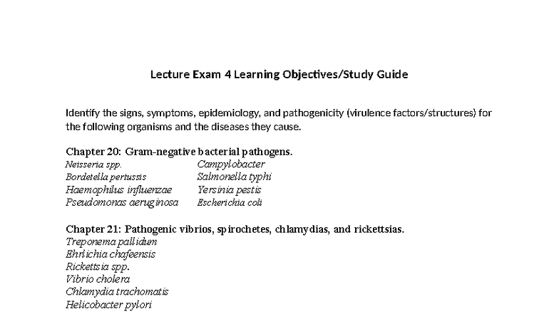 BIOL 2420 Lecture Exam 4 Study Guide: Pathogens & Diseases (Ch 20-24 ...
