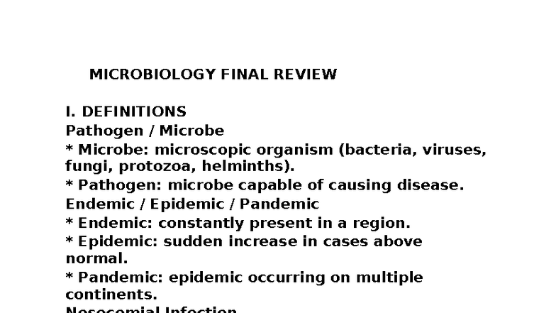 MICROBIOLOGY FINAL EXAM STUDY GUIDE: KEY CONCEPTS & PATHOGENS - Studocu