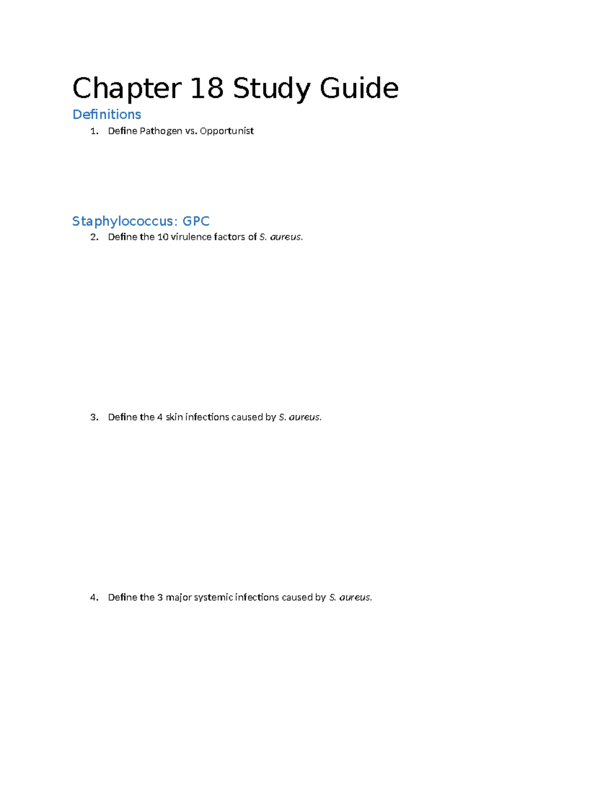 Microbiology CH18 Study Guide: Pathogens & S. aureus Infections - Studocu