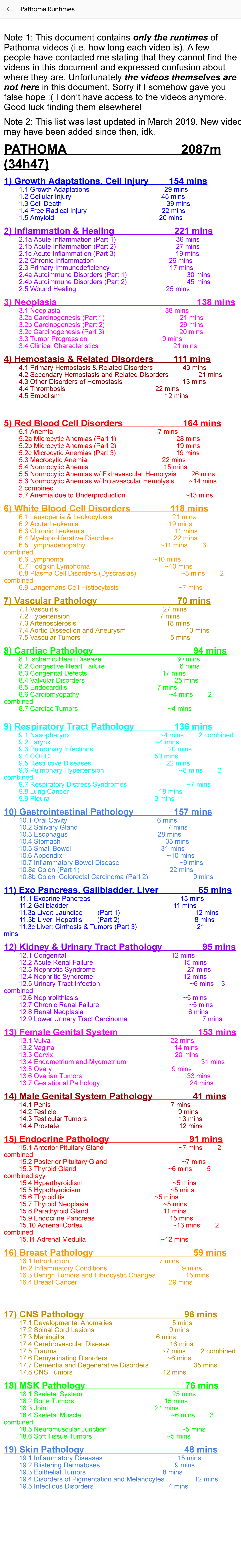 Pathoma index - Note 1: This document contains only the runtimes of ...
