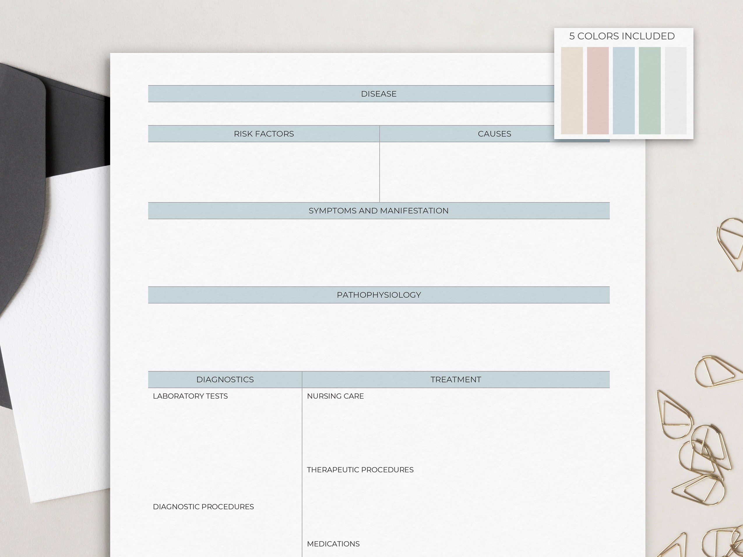 Pathophysiology Disease Template, Study Chart, Great for Students in ...