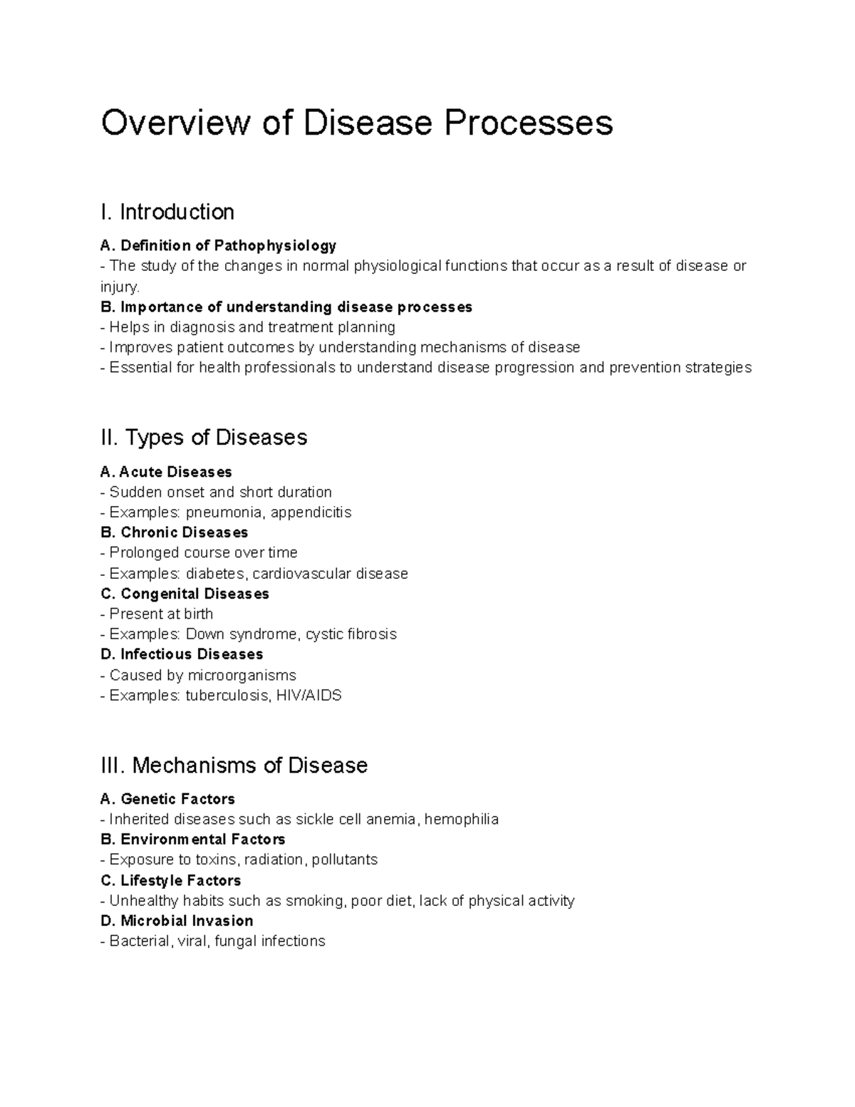 Pathophysiology (NUR 322) Lecture 2 - Overview of Disease Processes ...