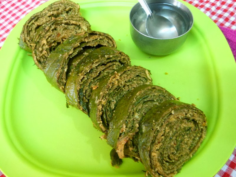 Steamed Colocasia Leaves Pinwheels (Pathrode or pathrado or pathrodo ...