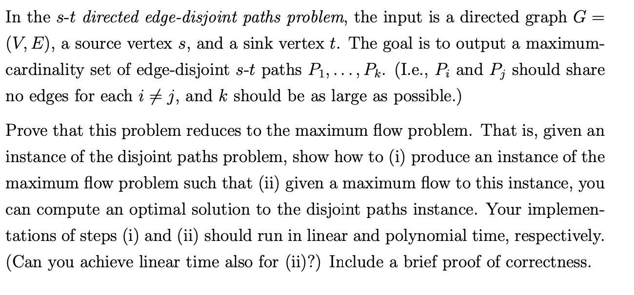 Solved In the s - t directed edge-disjoint paths problem, | Chegg.com