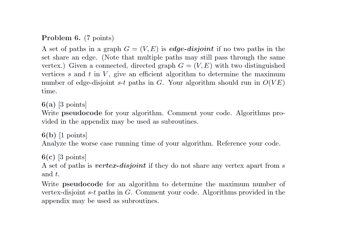 Solved Problem 6. (7 points) A set of paths in a graph G = | Chegg.com