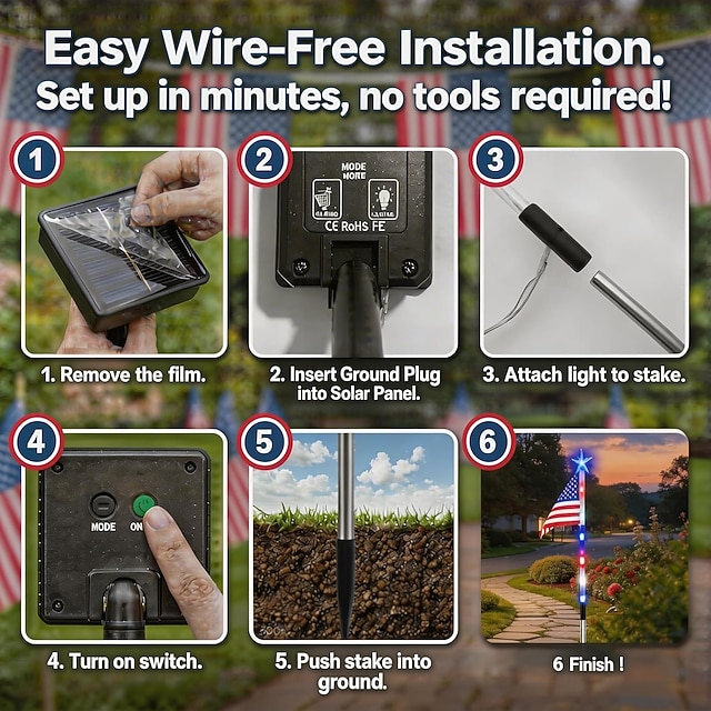 4 Connected in 1 Solar American Flag Pathway Stake Lights with 8 Modes ...