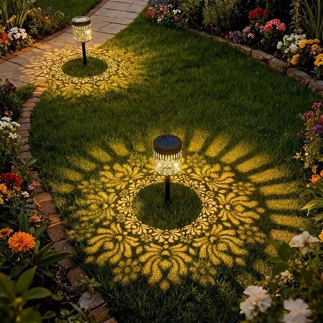 2PCS Solar LED Outdoor Lighting Lamps Peony Flower Shape Pathway Lights ...