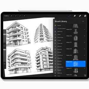 120 Procreate Buildings Sketches Stamp Brushes | Architecture Procreate ...