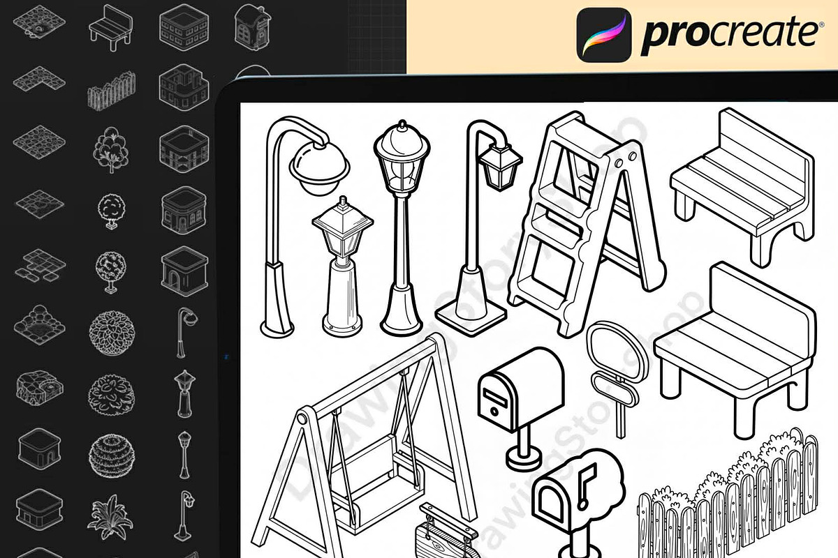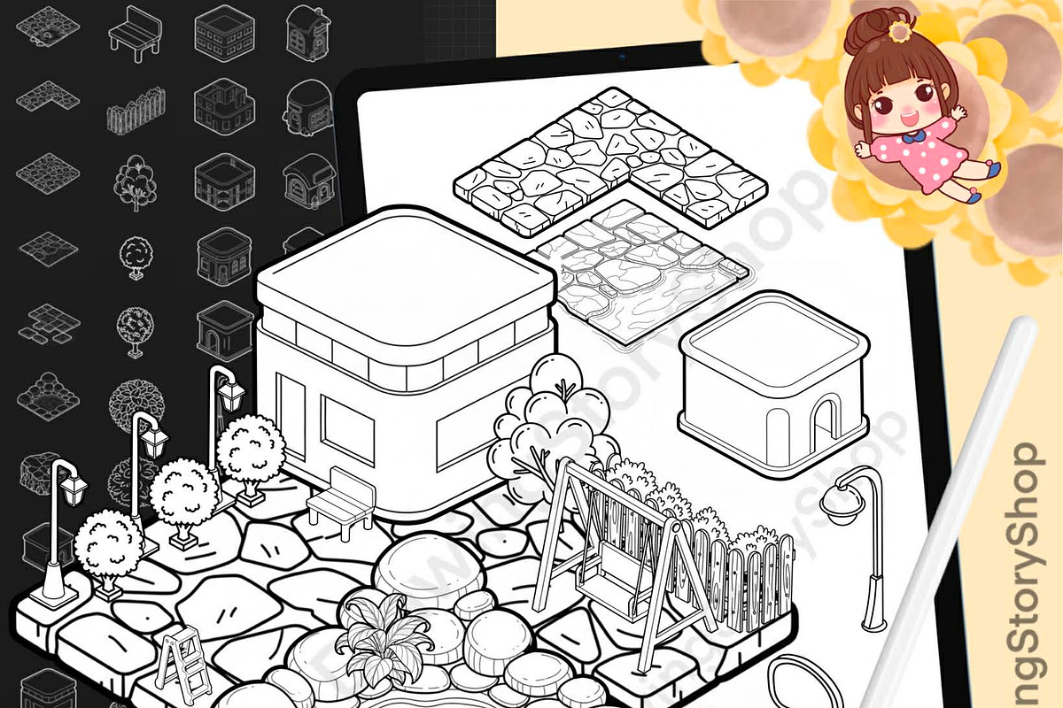 200 Procreate Isometric Buildings Stamps Graphic by DrawingStoryShop ...