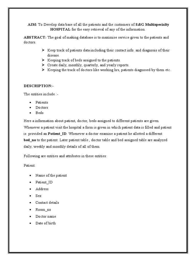S&G Hospital Patient Database System | PDF | Databases | Medicine