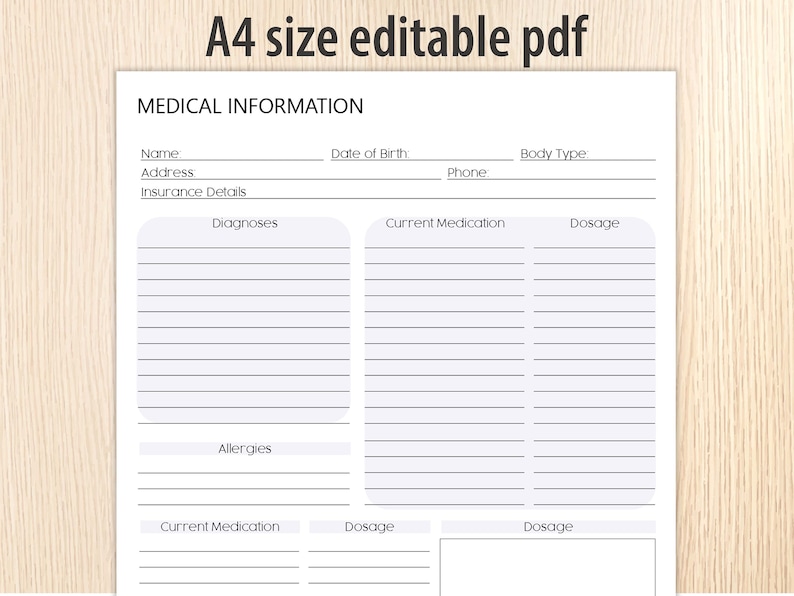 Medical Information Template: Patient Records, Health Data (A4 Editable ...