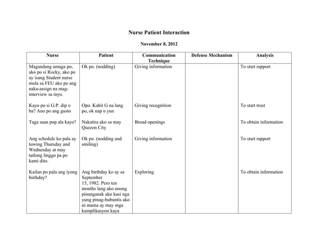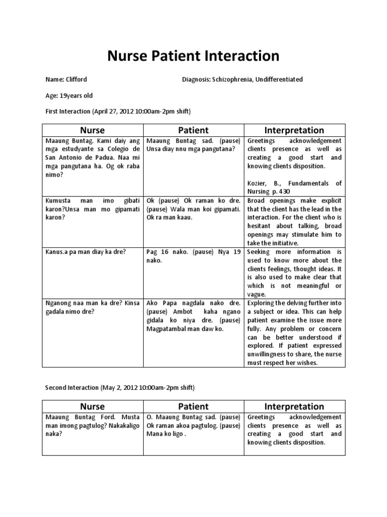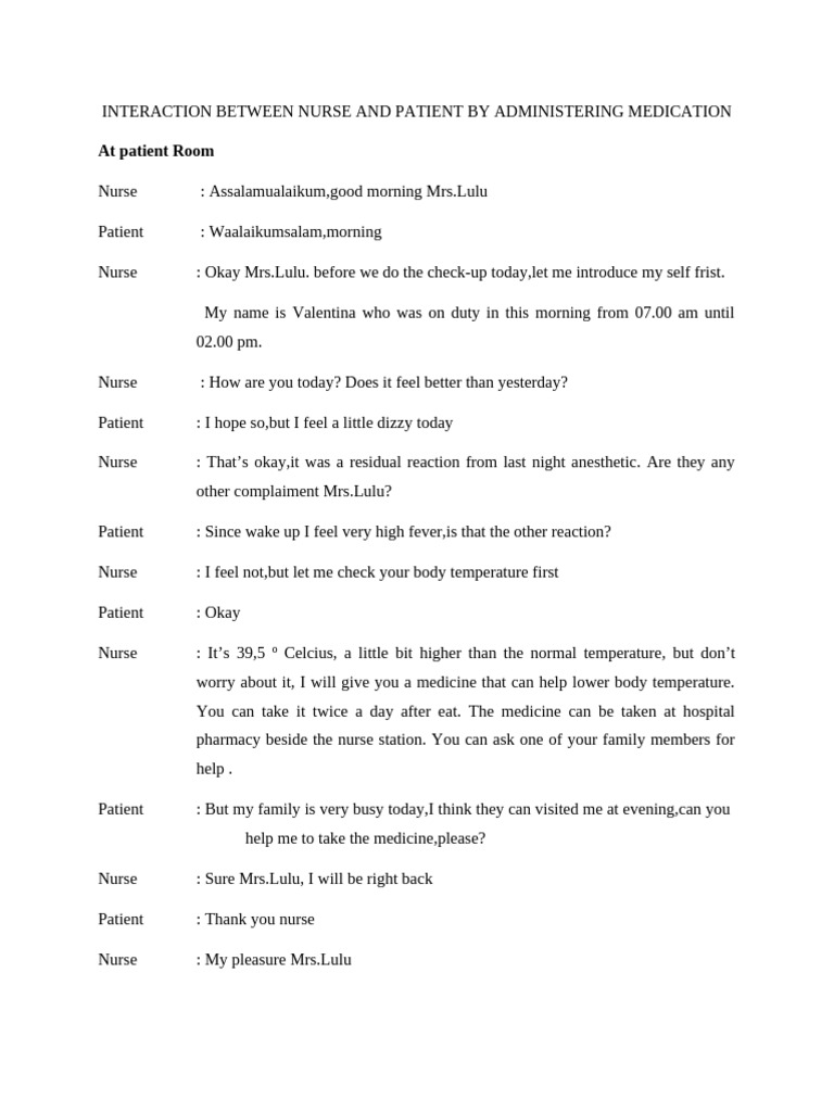 Nurse Patient Interaction Script - Nurse Patient Therapeutic ...