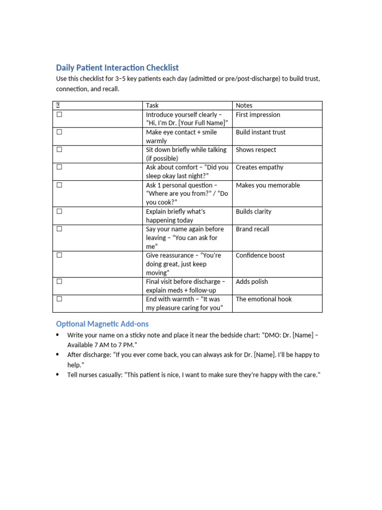 Daily Patient Interaction Guide | PDF