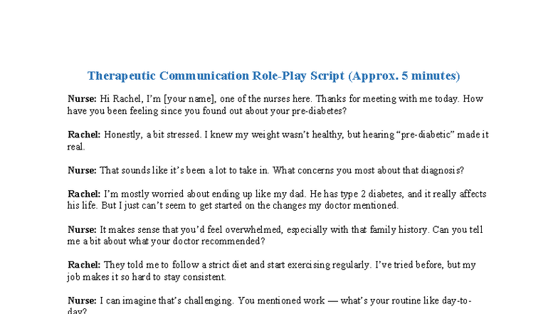 Therapeutic Communication Script: Case Study Role Play - Studocu