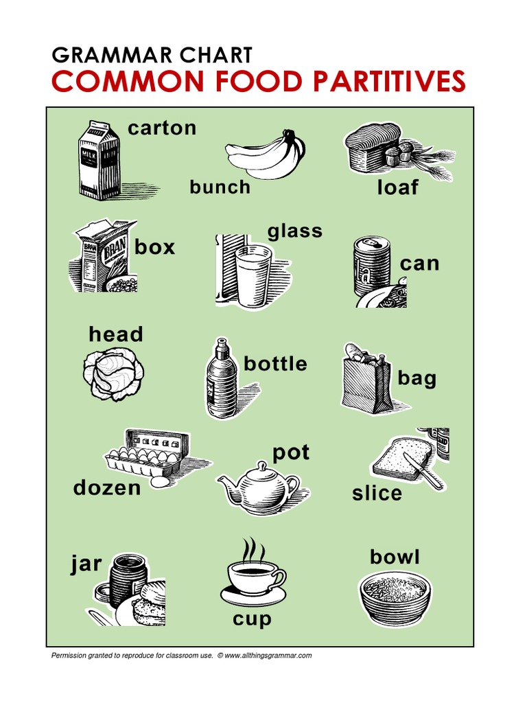 English Grammar Common Food Partitives www.allthingsgrammar.com ...