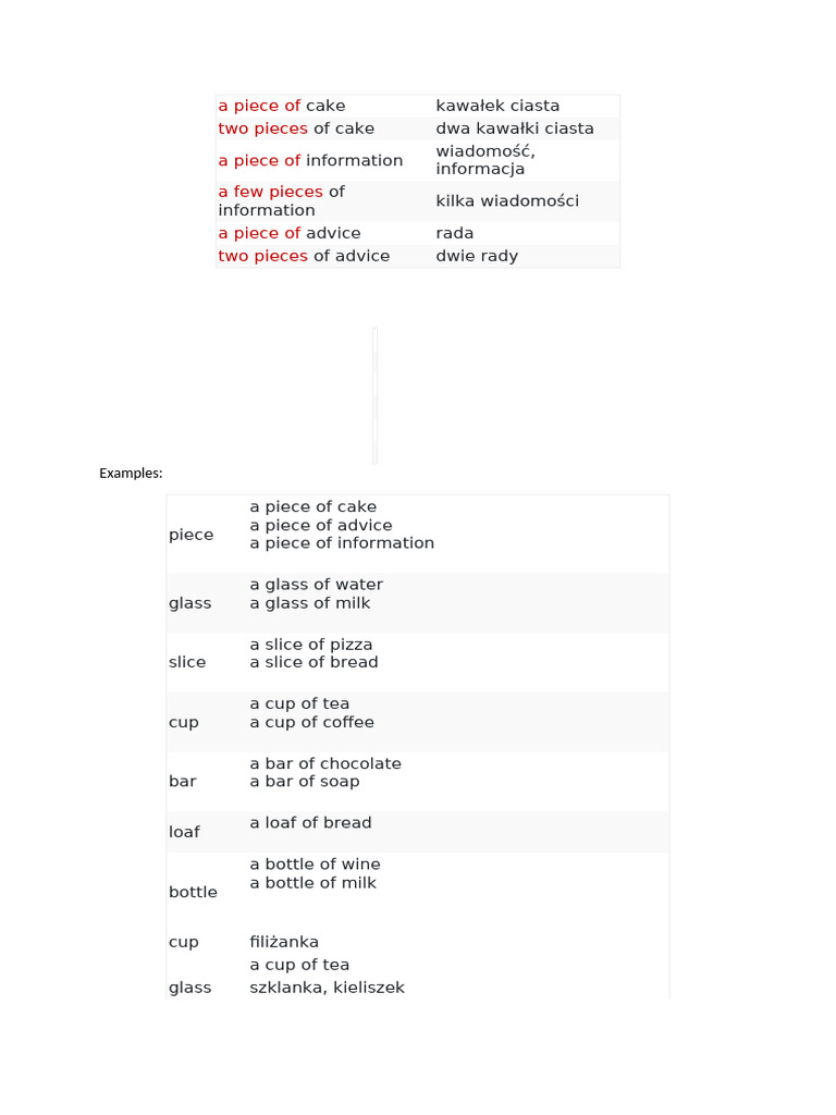Uncountable and countable nouns and partitives to go with them - ESL ...