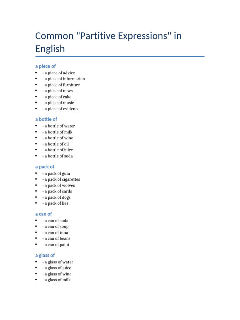 Examples of partitive expressions. http://e-nglishlanguageonline ...