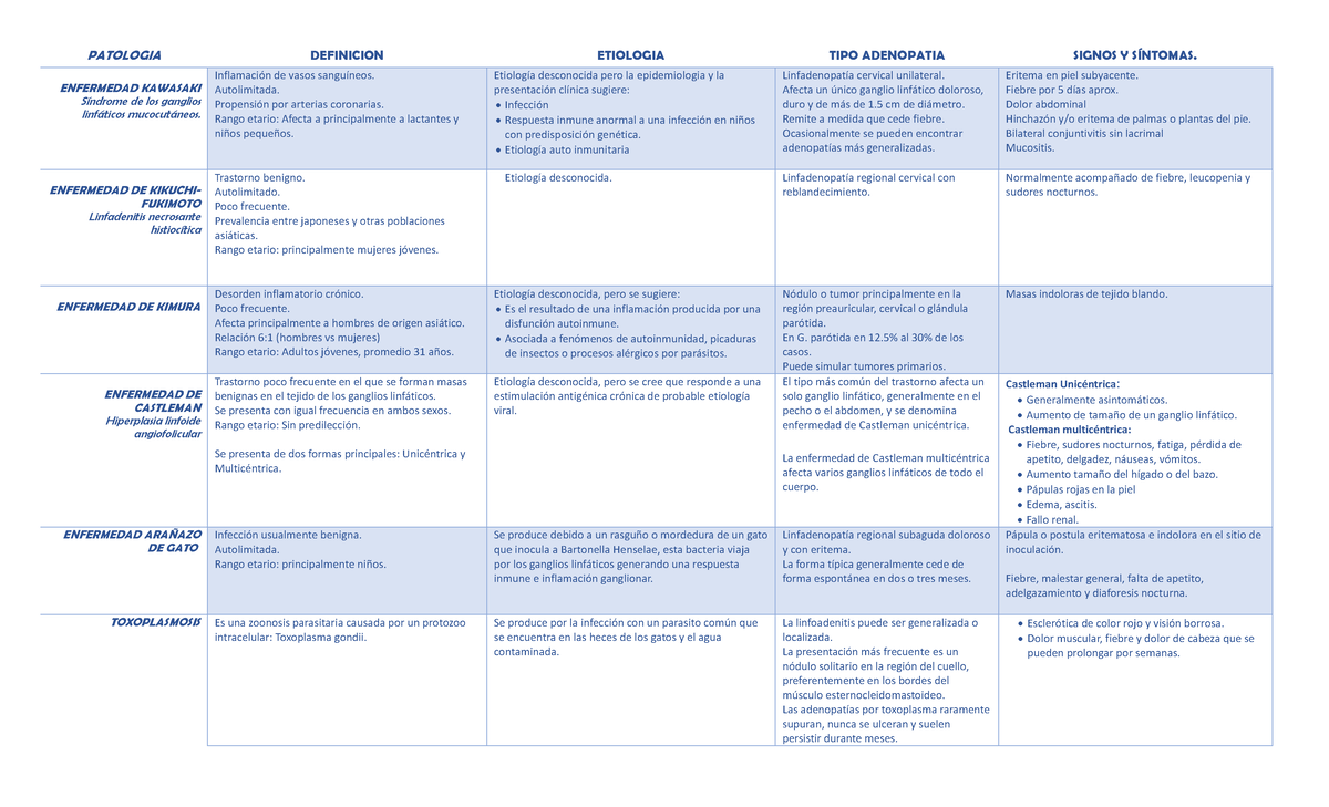Cuadro de resumen - Patología oral. Patologías en ganglios. - PATOLOGIA ...