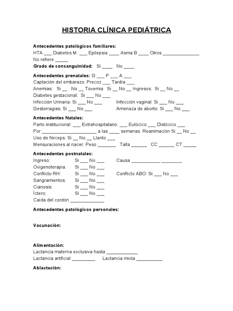Historia Clínica Pediátrica: Antecedentes Patológicos Familiares | PDF ...