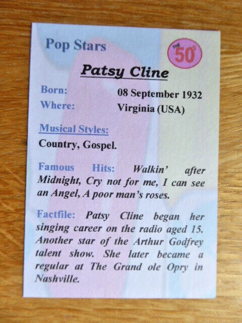 PATSY CLINE POP STARS THE 50's MUSIC CARD #28 MINT EUR 5,91 - PicClick IT