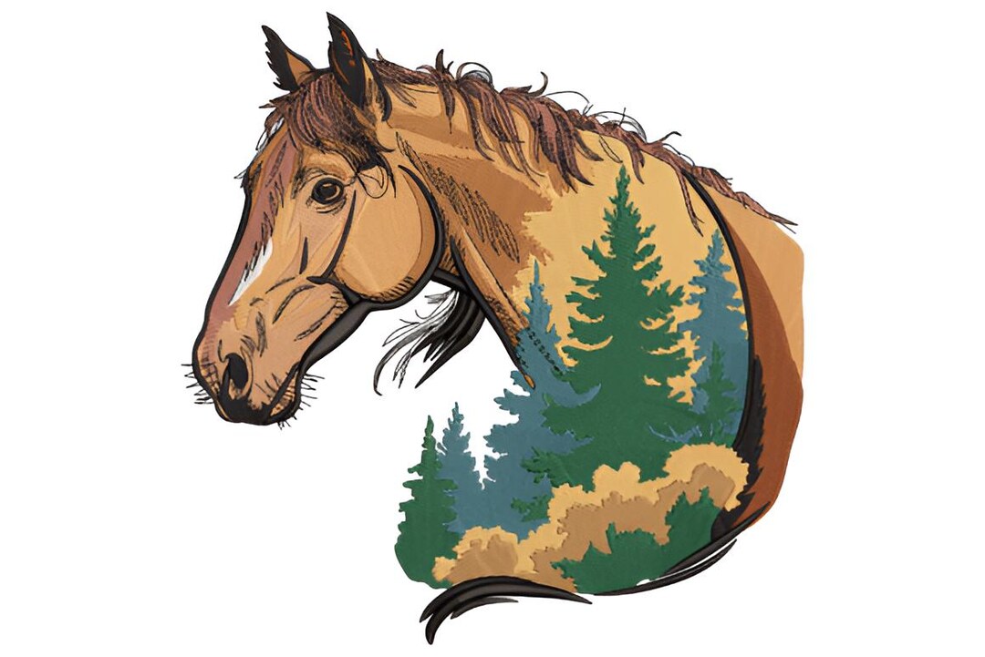Forest Horse Silhouette Embroidery Design | Wild Horse Embroidery ...