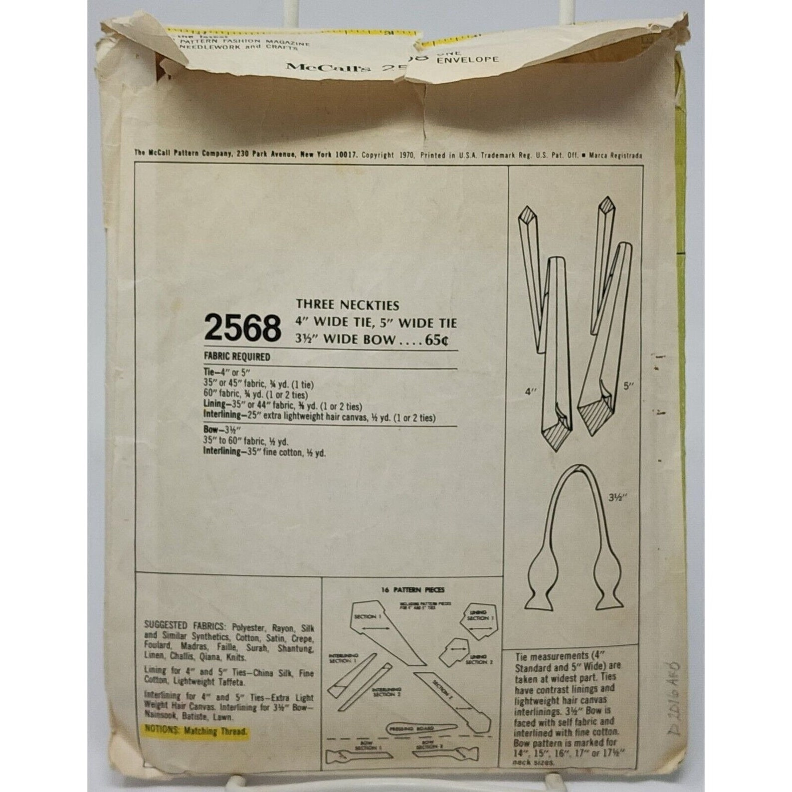 2568 McCalls Vintage 70's Three Wide Neckties Sewing Pattern | eBay