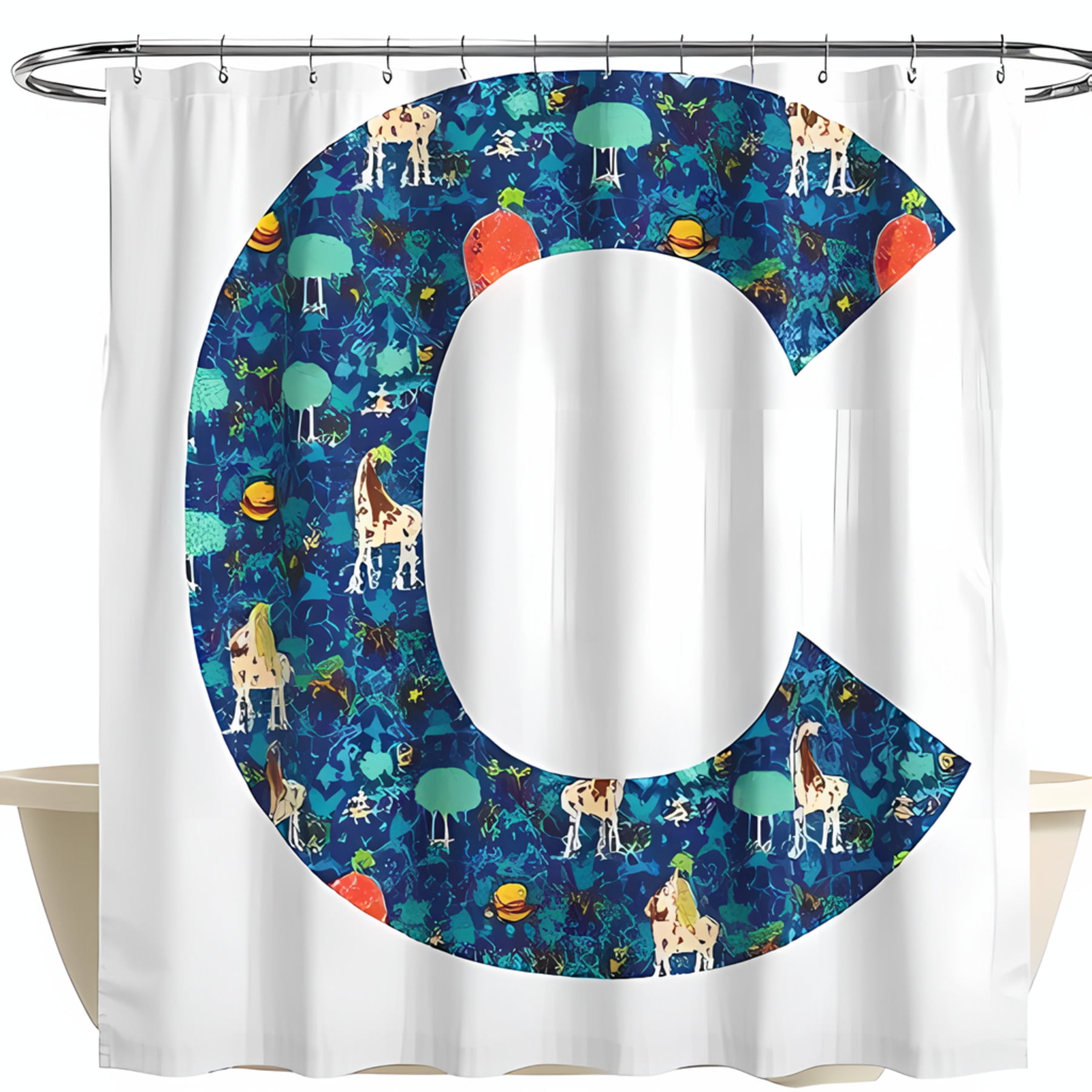 Colorful Animal & Fruit Pattern Shower Curtain with Large Letter 'C ...