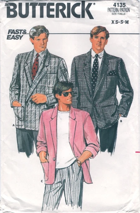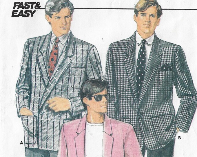 Butterick 4135 Rare 1980s Men's Loose Fit Suit Jacket Pattern Size L-XL ...
