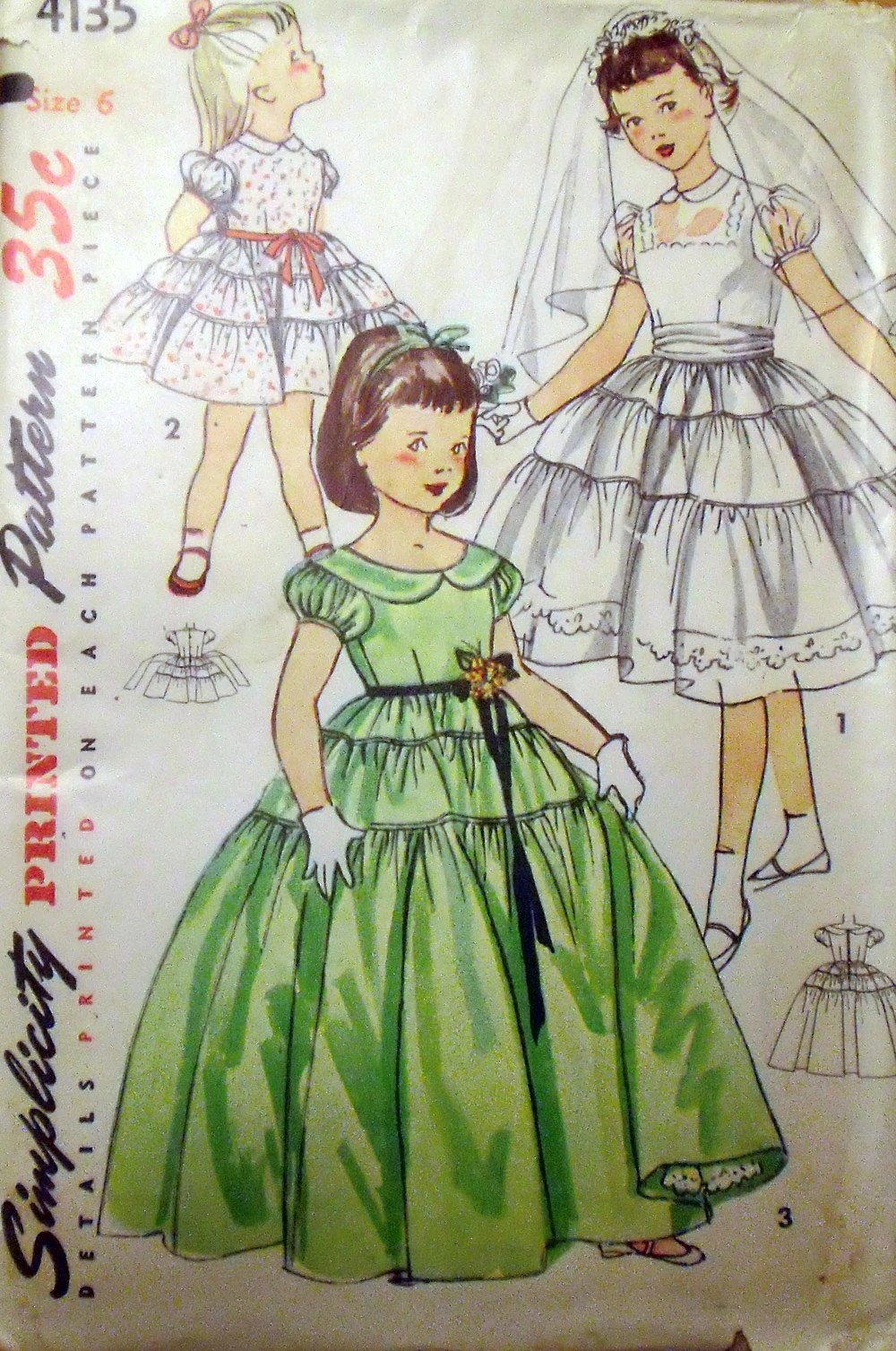 Vintage 1950's Simplicity 4135 Sewing Pattern - Child's One Piece Dress ...