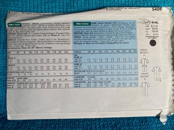 Butterick Sewing pattern 5408 dress suit 1980s sz 18 … - Gem