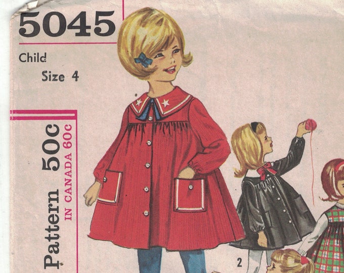1960s Vintage Sewing Pattern Simplicity 5045 Girls Smock Dress Button ...