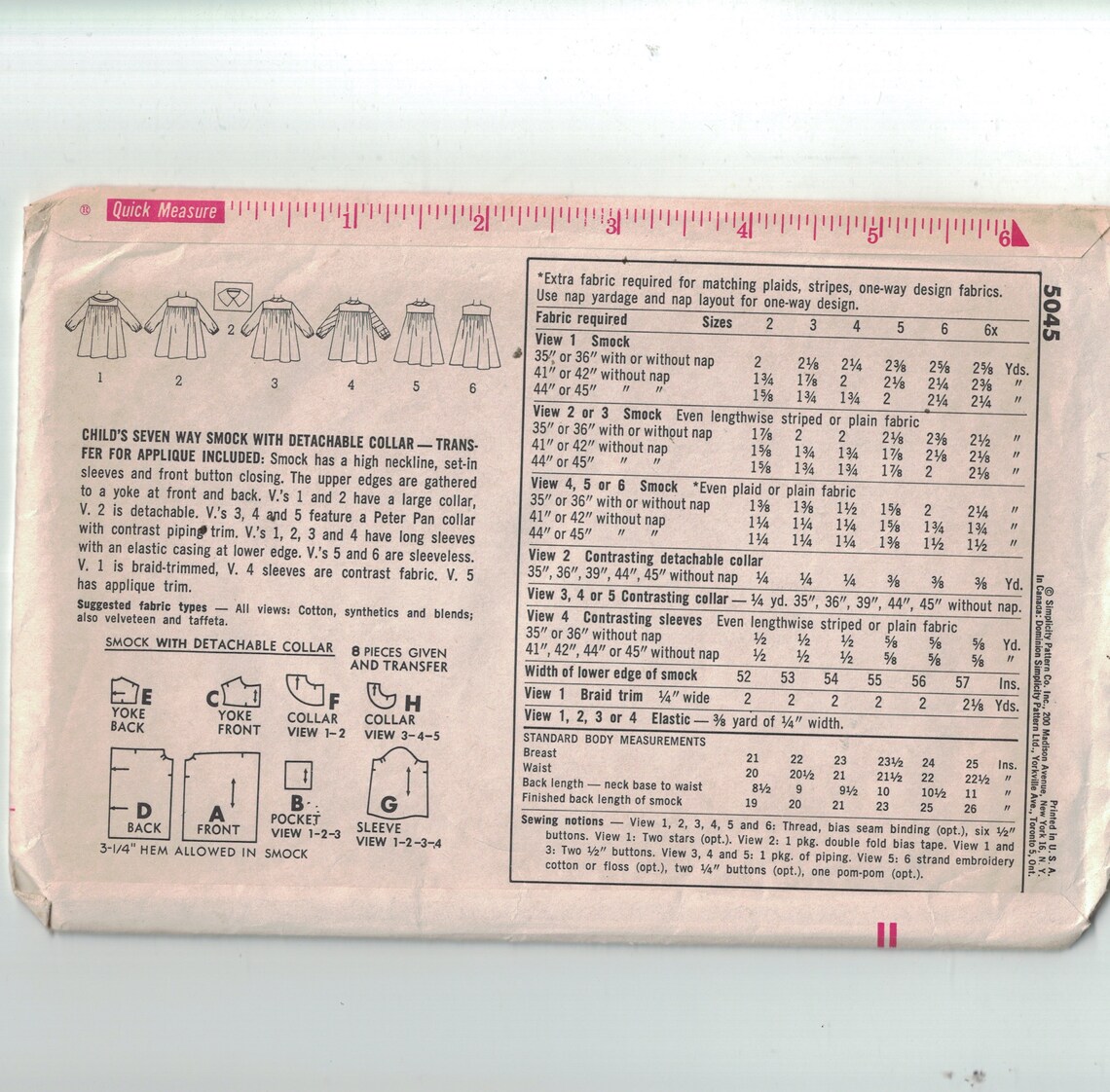 Simplicity Pattern 5045 Childs Seven Way Smock With Detachable Collar ...