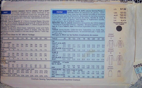Butterick Sewing Pattern 5045 Dress Top Skirt Long Sleeve - Etsy