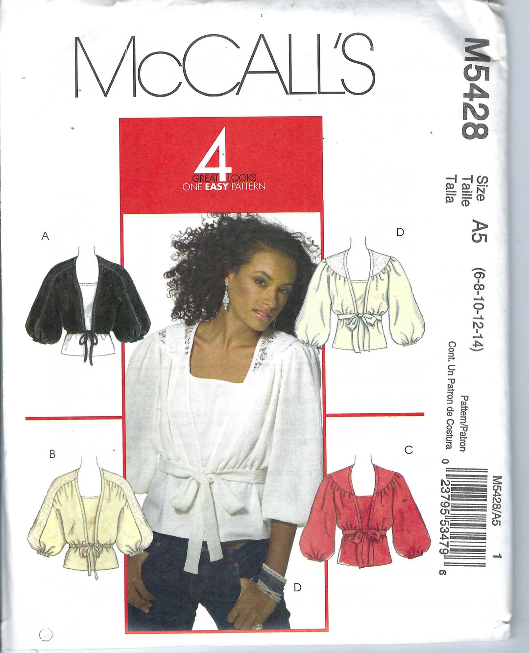 Uncut Mccalls Sewing Pattern 5428 Shrug Tie Front Top, Shrug Puff ...