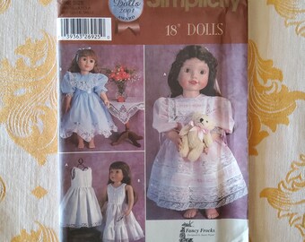 18 INCH DOLL DRESS Pattern Simplicity 5428 Doll Wardrobe Vintage Dress ...
