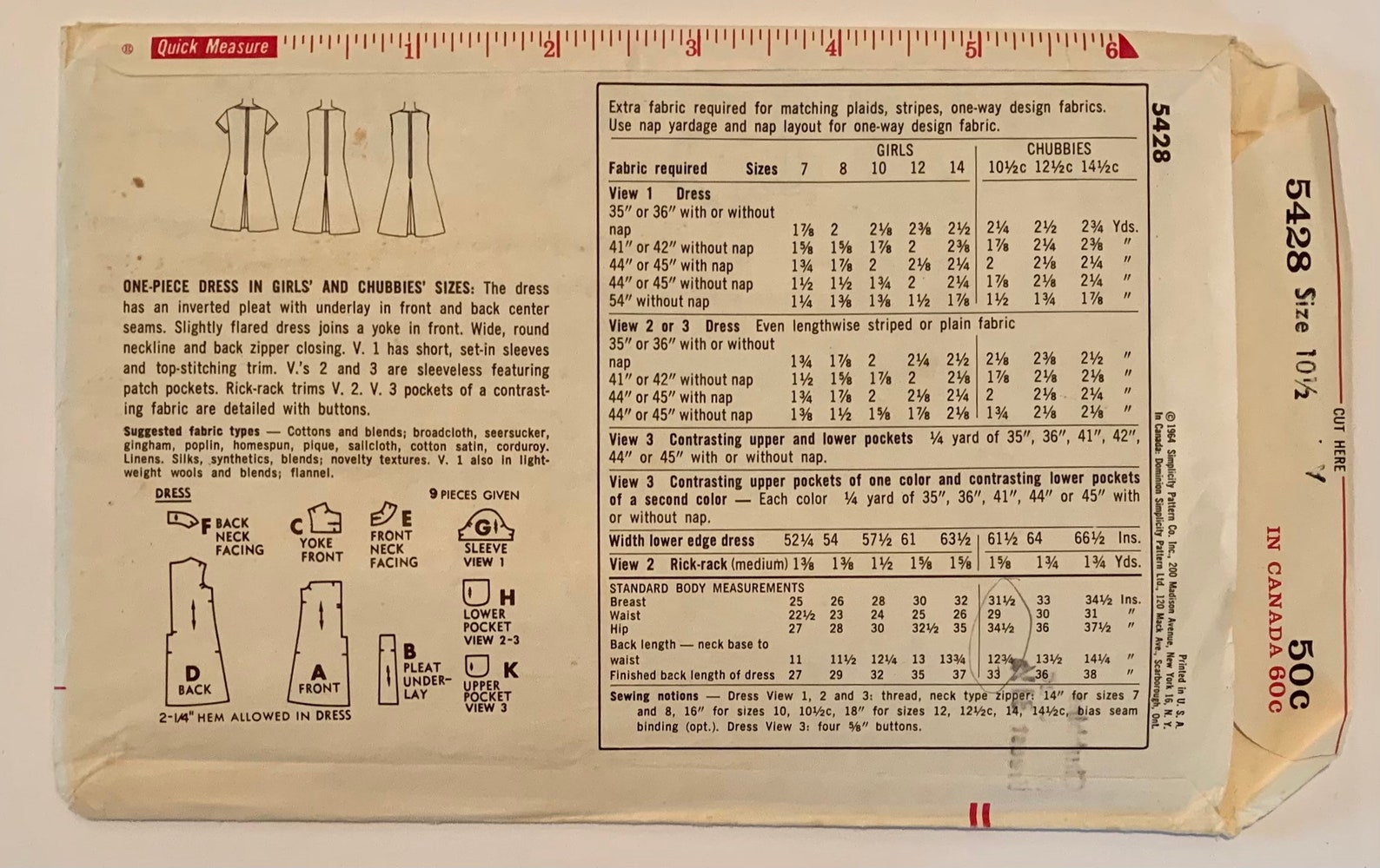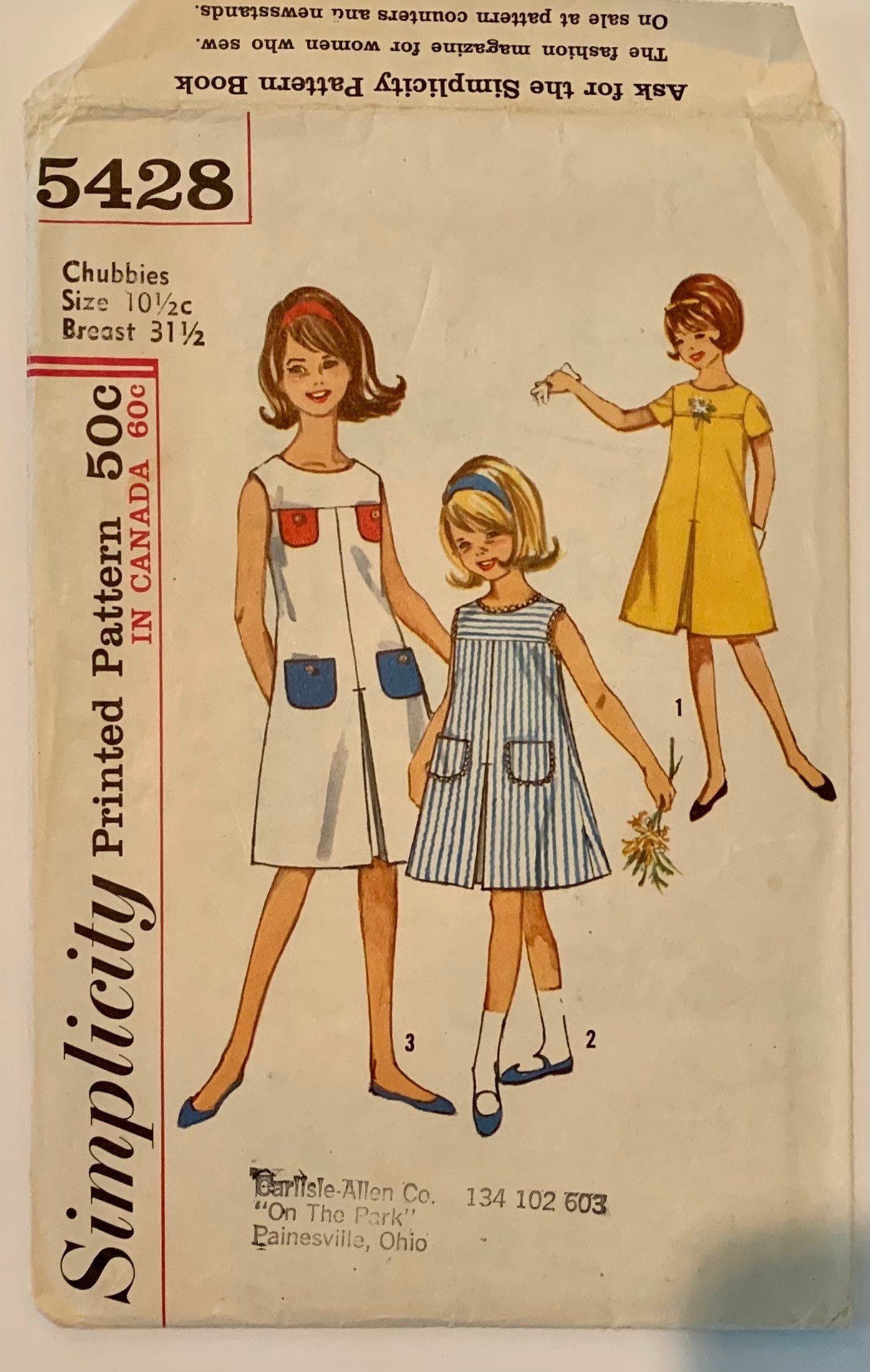 Vintage 1964 Simplicity 5428 Girls Size 10.5c Breast 31.5 One-piece ...