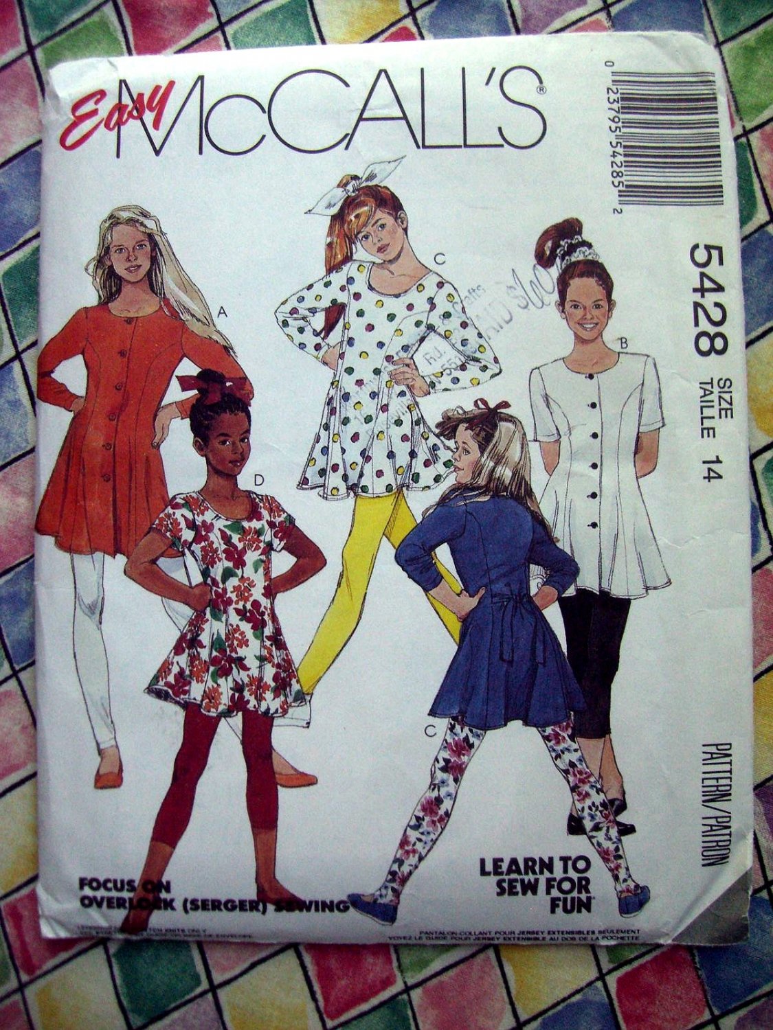 McCalls Pattern # 5428 UNCUT Girls Tunic Leggings---Stretch Knits Size 14