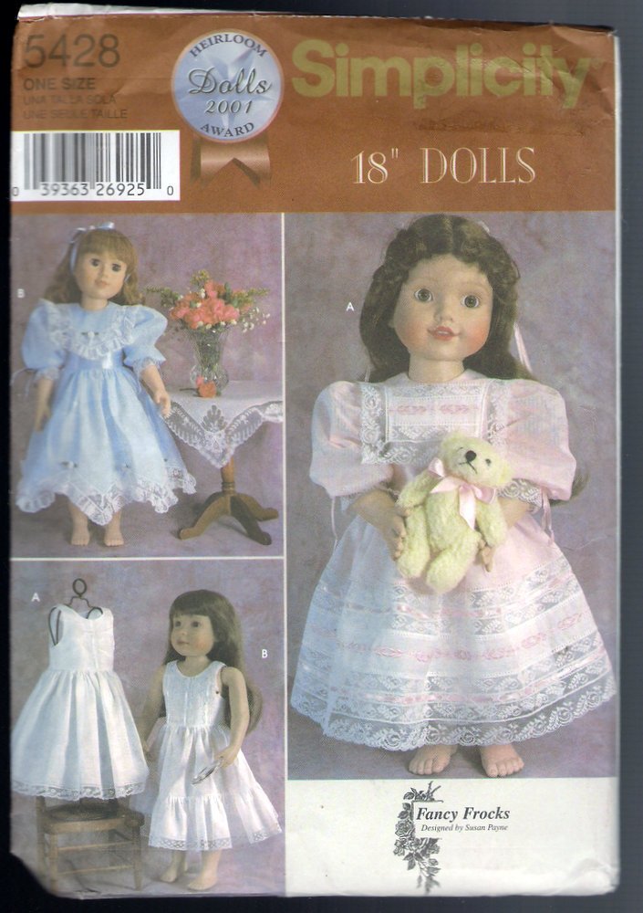 Simplicity 5428 Sewing Pattern Fancy Frocks Susan Payne Fits 18" Dolls ...