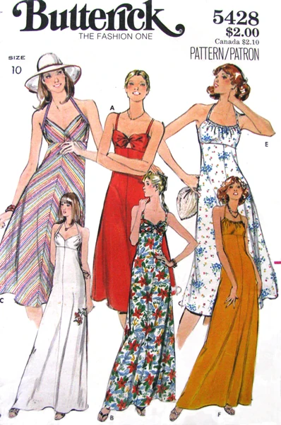 Butterick 5428 Misses' Dress 1970s Fitted Halter Top | Etsy | Vintage ...