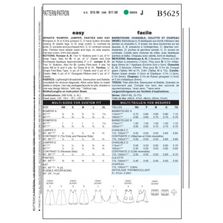 Butterick Pattern B5625 Infants' Romper, Jumper, Panties and Hat 5625 ...