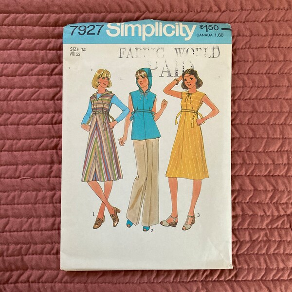 1977 Simplicity 7927 Dress or Jumper Pattern - Size 14 - Vintage - Etsy