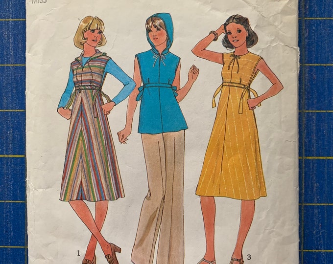 Vintage 1977 Misses' DRESS & HOODED JUMPER or TOP Pattern 7927-s Size ...