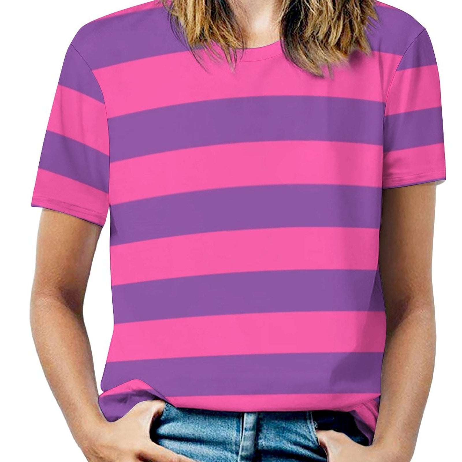 Cheshire Cat Print New Fashion Zip Off Shoulder Top Short-Sleeve Women ...