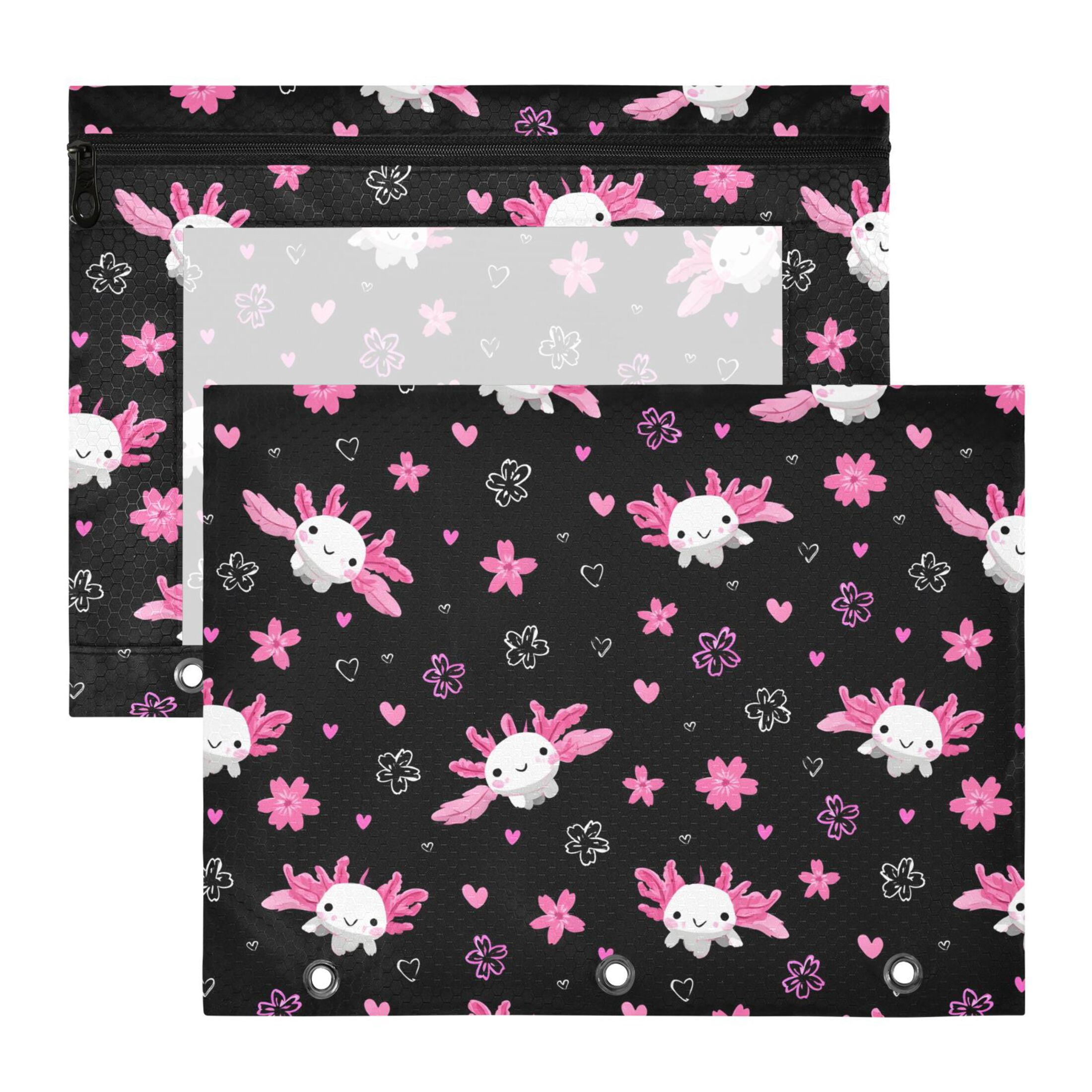 ALAZA Axolotl Pink Flower Pattern Pencil Pouch 3 Ring Binder with Clear ...