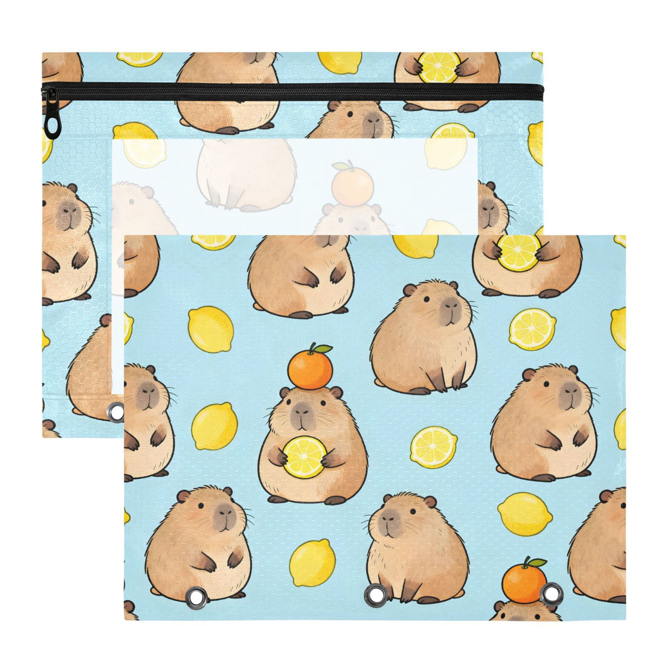 ALAZA Capybara and Lemon Pattern Pencil Pouch 3 Ring Binder with Clear ...