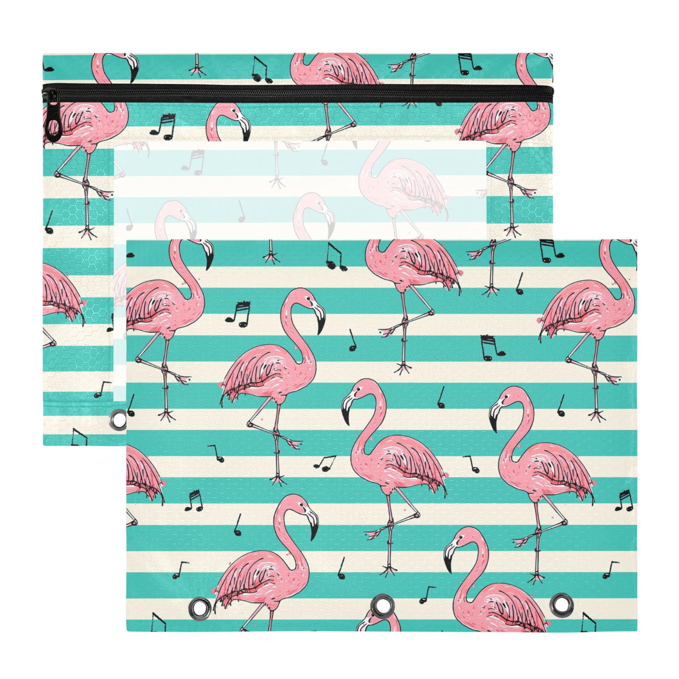 ALAZA Flamingo on Stripes Pattern Pencil Pouch 3 Ring Binder with Clear ...